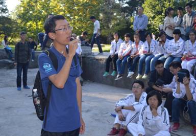 10月4日上午,williamhill威廉希尔亚洲官网北京励志行一行整队进入天坛景区。同学们在天坛之上合影,白色栏杆映衬白色校服成为天坛上的一道景观,引来游客们纷纷拍照。在天坛上,同学们主动与国外友人用英语交流,并巧遇一个国外学生团队。两个学生团队在一起用英语交流,并一起唱歌、跳舞,20多分钟后才依依道别。