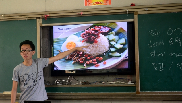 1班的欧阳书婷和尹慧娟同学忙着和摩洛哥的Houda合影留念;3班的欧阳慧和李诗诗忙着和台湾的刘又豪合影留念;4班和13班的同学们则分别急着要和自己班上的志愿者Vivi(印尼)、李祥瑞(四川大学)以及Dilara(土耳其)、Panda(中国的陈亦成)照集体照,以便能留下永久的回忆。