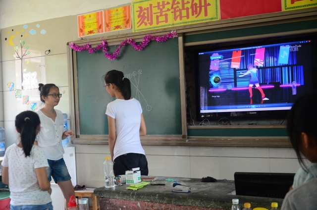 心爱着自己学生的志愿者们也”坐立不安起来”。吃完晚餐,距离上课时间还有半个小时,志愿者们就来到了办公室或者教室,有的忙着准备明天闭营仪式的节目,有的忙着给同学们留言、留联系方式。更有一部分志愿者坐校车到超市为同学们准备礼物去了。