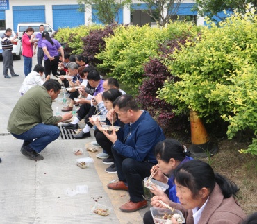 一路欢歌笑语,阳光洒满车间。中午一点,旅行团抵达灵川服务区,香喷喷的正源盒饭从车里抬出来后,大家席地而坐,享受这一独特美食。