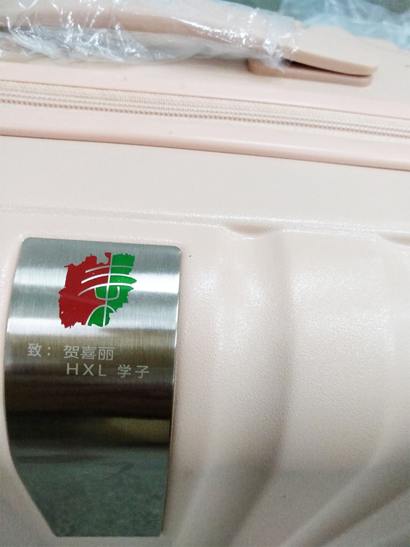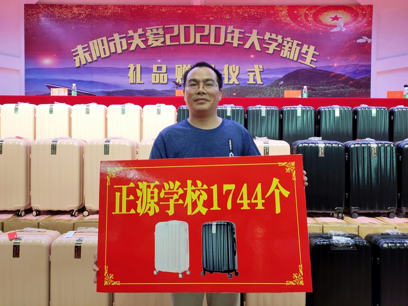 仪式现场,各学校代表登上荣誉台,领取箱包礼品牌。我校三本以上1744名同学获得市委政府赠送的特别定制的品牌行李箱,此次市委政府赠送的每个行李箱上都有学生姓名。