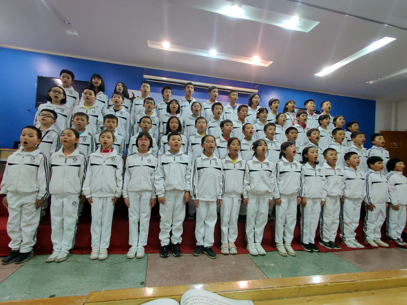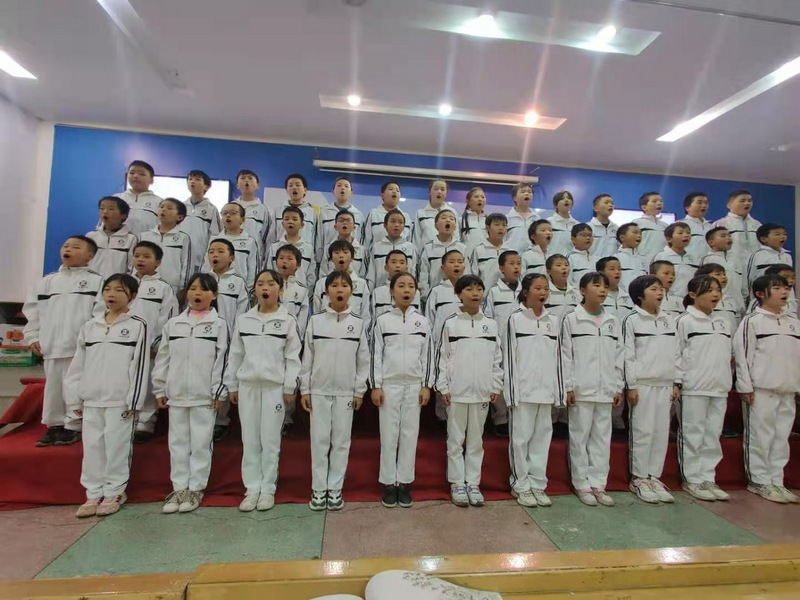 11月17日下午,五年级全体师生齐聚报告厅举行经典美文背诵比赛。