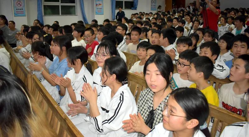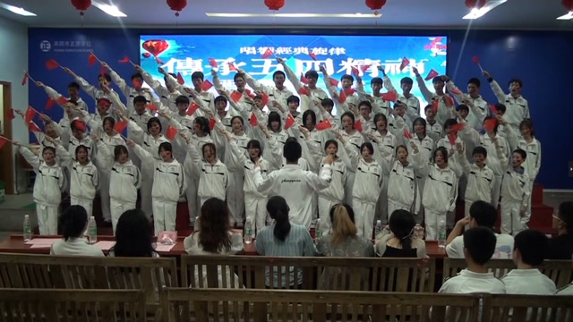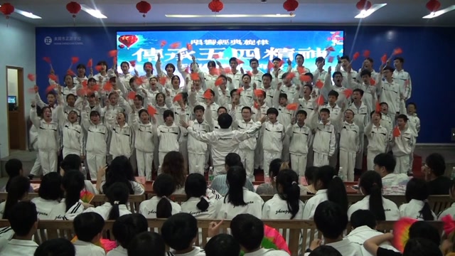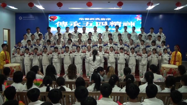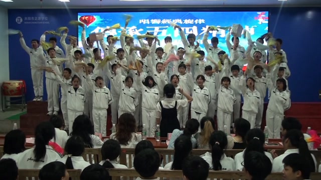 4月12日晚上7点,在一段动感时尚的舞蹈中,下半场比赛开始了。502、494等班级依次上台献唱,495班在选唱歌曲中编排了一段拥军秧歌,插入小军鼓及扛着步枪、红旗的解放军表演赢得了台下师生雷鸣般的掌声。496班更是将现场气氛推上了高潮,最后上台的504班唱完《我和我的祖国》后,年级还给大家观看了一段精心准备的威廉希尔中国网址,带同学们走进那段峥嵘岁月,感悟五四精神的真谛。初中部德育主任肖常科上台即兴演说:“五四精神是忧国忧民、积极创新的爱国主义精神。希望大家也能奋发向上,为实现我们中华民族的伟大复兴而努力。”初一年级主任曹秋文上台做了精彩的结束致辞,他用“感谢、感悟、感动、感恩”这八个字概括地讲了他对所有参与活动的师生的感谢;看到了同学们在这次活动中对五四精神的感悟;被同学和老师们的热情所感动;对那些用血肉、用生命为我们打造了和平稳定的生活环境的革命先烈的要心怀感恩。