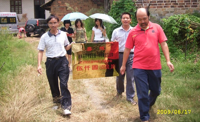 为考取全国十大名校武汉大学的谷穗成同学颁奖(8月18日)