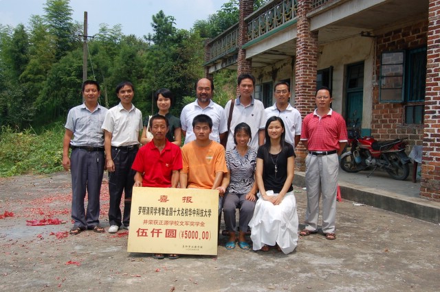 为考取全国十大名校华中科技大学的罗明清同学颁奖(8月23日)