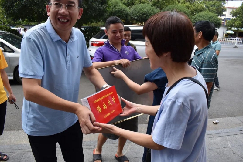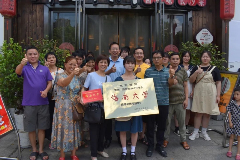 8月29日,我们随着高三年级主任钟琼佳、复读班班主任向苏老师和任课老师们,带着恭贺铜匾、华为平板电脑来到城区酒店,祝贺曹倩历史类563分正源文科第十二名被双一流211海南大学录取。