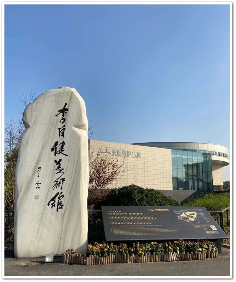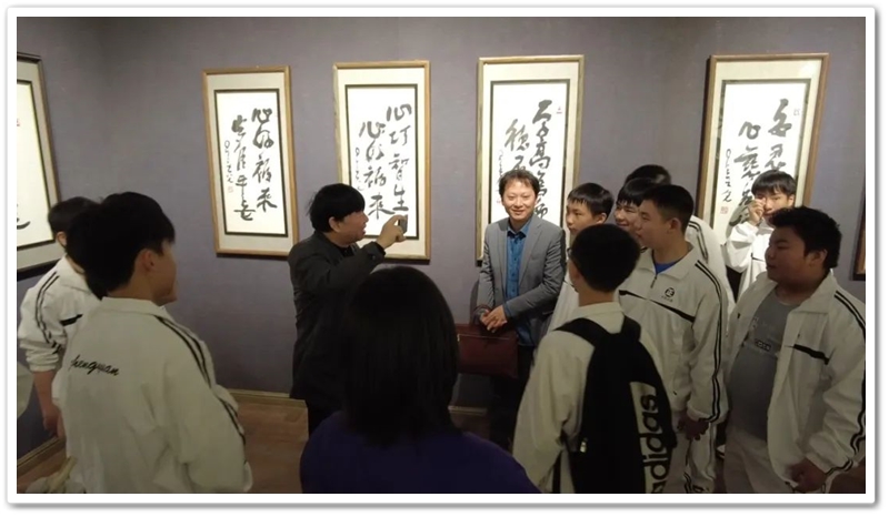 早餐后,米勋老师带领同学们参观正在紧锣密鼓建设中的美术大楼和学校现有的古迹收藏。米老师湖南师范大学美术学专业硕士研究生毕业,18年一线高考教学经验。他向同学们介绍,现在建设中的美术楼,规划为三层,一楼为约2000平的美术博物馆,同时配有名师个人工作室。二楼设有报告大厅,二、三楼小班美术教室共30余间,同学们参观时感觉大得也像迷宫。同学们看到,美术大楼正面红砖裸墙上,是特殊设计的立体字画,左边是竖排“正源教育”四个大字,右边是横幅“千里江山图”,这些字画造型别致,大气磅礴。字画下面墙体上,镶嵌着大小不一、年代各异的石碑,朴实无华,古色古风。