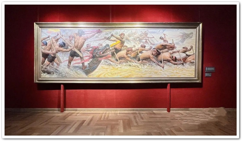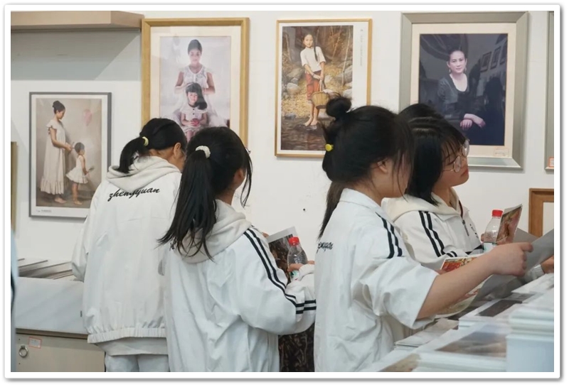 接着,同学们再乘大巴前往位于湘江西岸的李自健美术馆。这是世界上最大的个人美术馆。更幸运的是美术馆馆长李自健先生今日在美术馆内,看到williamhill威廉希尔亚洲官网这么庞大的学生队伍前来参观,非常高兴,放下手中忙碌的活计,亲自给同学们当向导,当讲解员。当讲解到受台湾星云大师委托所创作的《南京大屠杀》油画前时,同学们深受震撼,黄磊同学说,原来自己只懵懵懂懂地想学书法,现在像醍醐灌顶,当时就明确了自己的奋斗目标,也要像李自健老师一样拿起画笔,揭露日本军国主义的罪行,呼吁人们珍爱和平,反对战争。