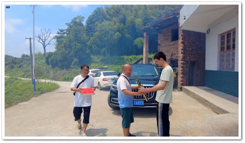 8月12日,高三年级主任陈斌、班主任董树伟率老师同学到亮源乡白马江村给曾维俊贺喜的欢庆现场,曾家父子发自肺腑的朴实话语令亲友们泪花盈盈。