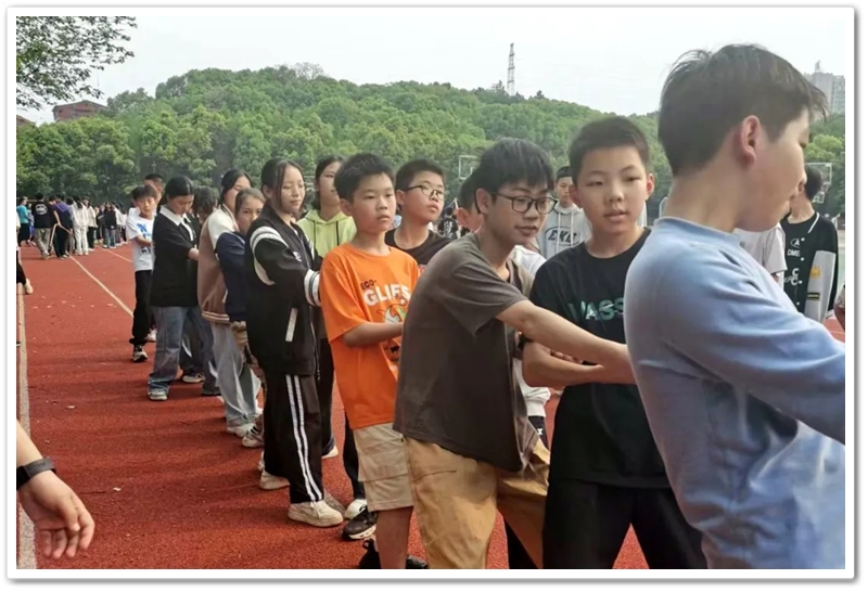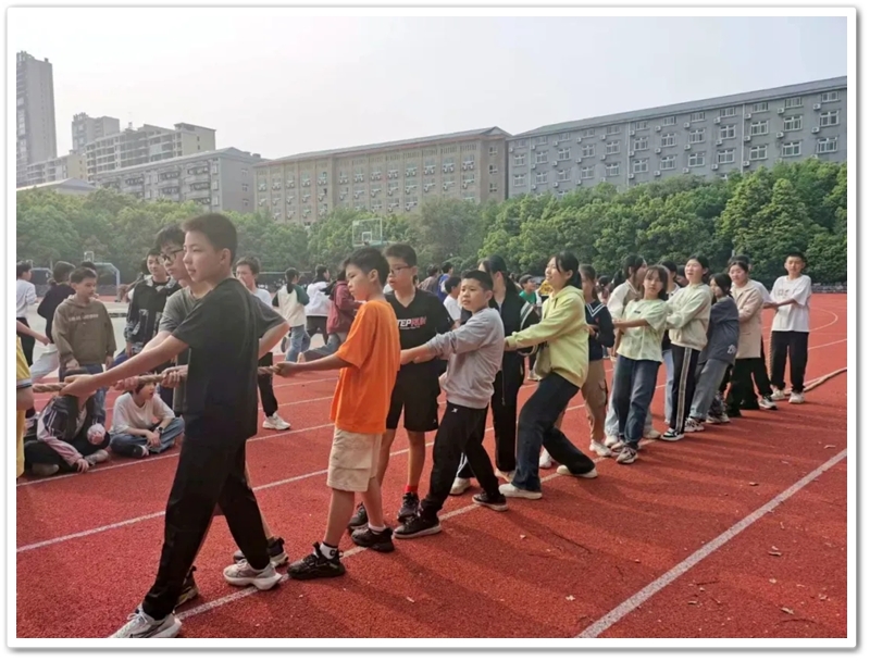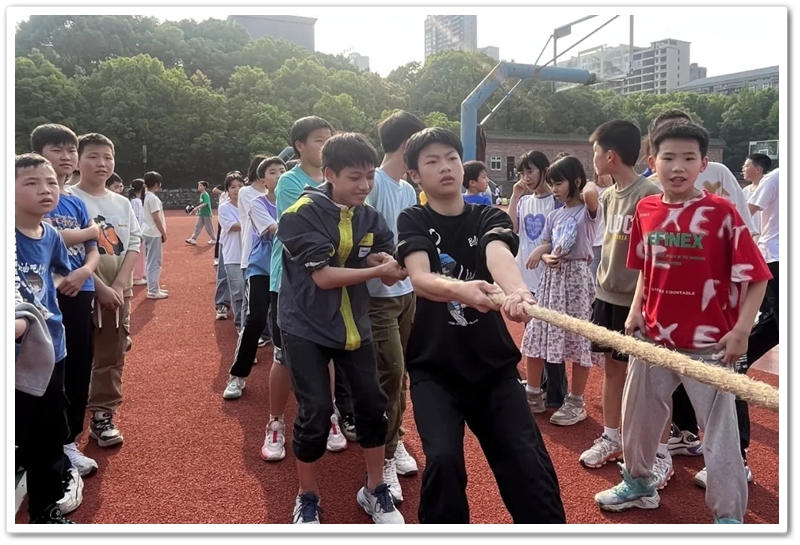 一声清脆的哨响拉开比赛的序幕,运动员们展开了激烈的比拼。拔河的赛场上,准初一的少年们展现出了惊人的活力和热情。他们紧握绳索,全力以赴,心往一处想,劲往一处使。他们用行动诠释了“团结就是力量”的真谛。每一次的拉扯,都是对团队默契的考验;每一次的呐喊,都是对胜利渴望的表达。