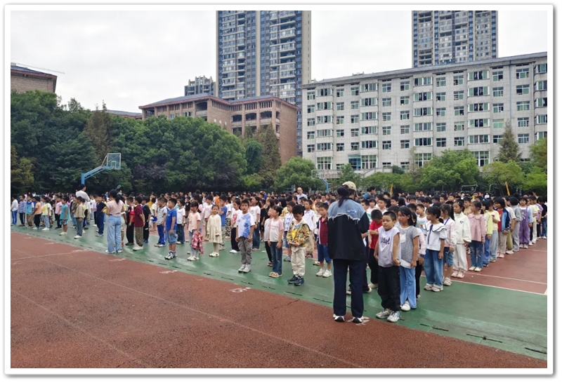 本次接力比赛采用按班级分组制,每班各派出44名同学参赛,每组22人,相对而站。比赛开始之前,李老师在台上讲解了相关注意事项并告知孩子们比赛的相关规则。台下的同学们脸上洋溢着期待与兴奋的笑容,紧张而又兴奋地等待着这场速度与团队合作的较量。