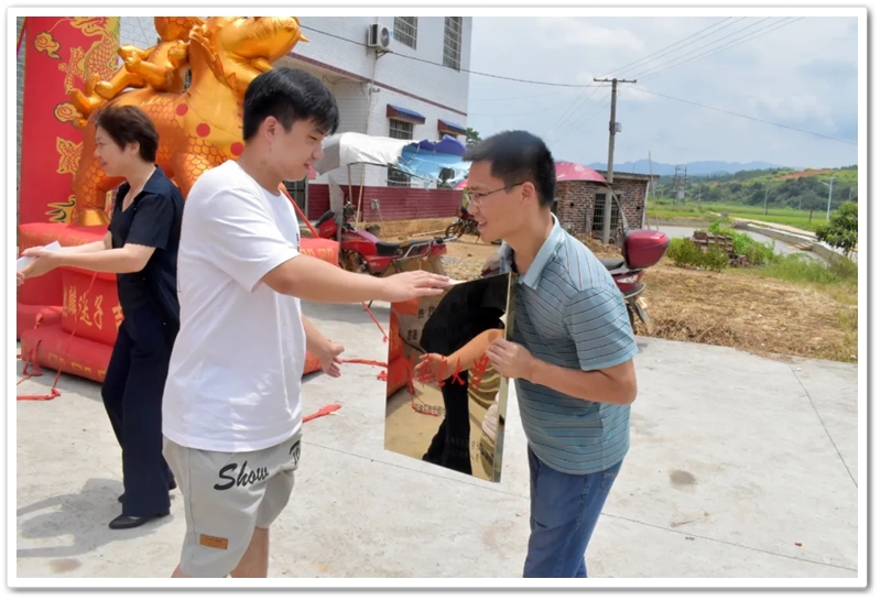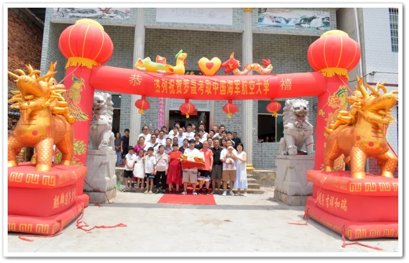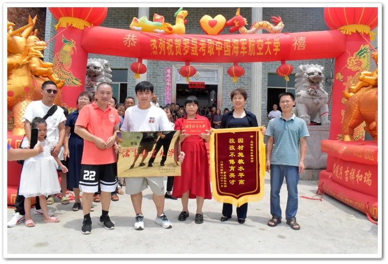 8月11日,校长夫人梁晓芬老师率老师同学们带着颁奖铜匾和平板电脑来到马水镇积岭村10组 ,热烈祝贺罗晟物理类597分考取海军航空大学,祝福罗晟在军营里步步高升越飞越高,“为未来的罗晟将军点赞!”