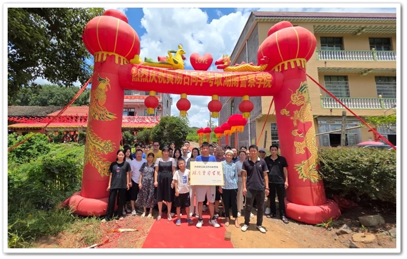 东湖昌明湾鞭炮震天,彩球、红龙拱门耀眼夺目。2025年8月3日,黄定泉夫妇为儿子黄汤古举办的升学宴上,三楼阳台鲜红横幅在夏风中猎猎作响:“热烈庆祝黄汤古同学考取湖南警察学院”。这份藏蓝的荣光,不仅是一个家庭的欢腾,更是一位少年在梦想航道上百折不回后,重新校准人生坐标的铿锵宣言。