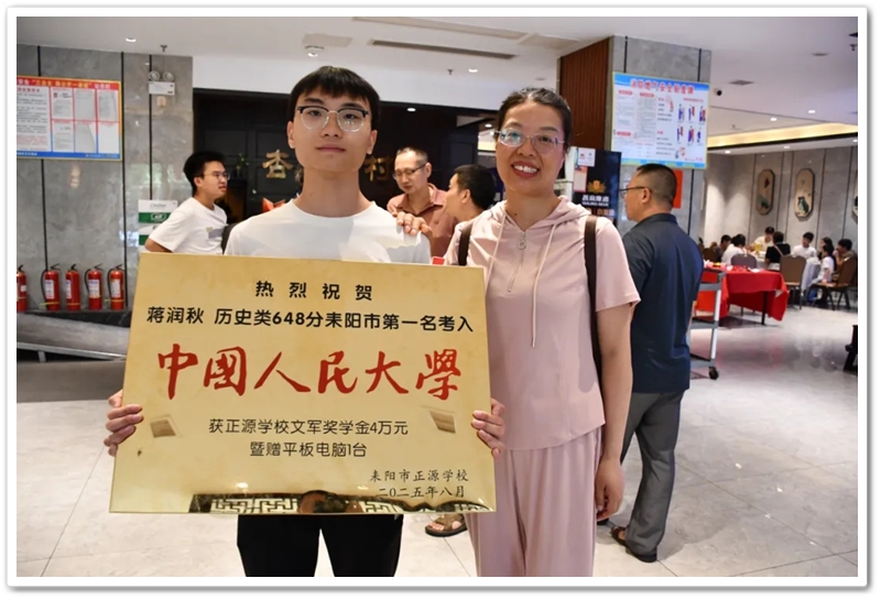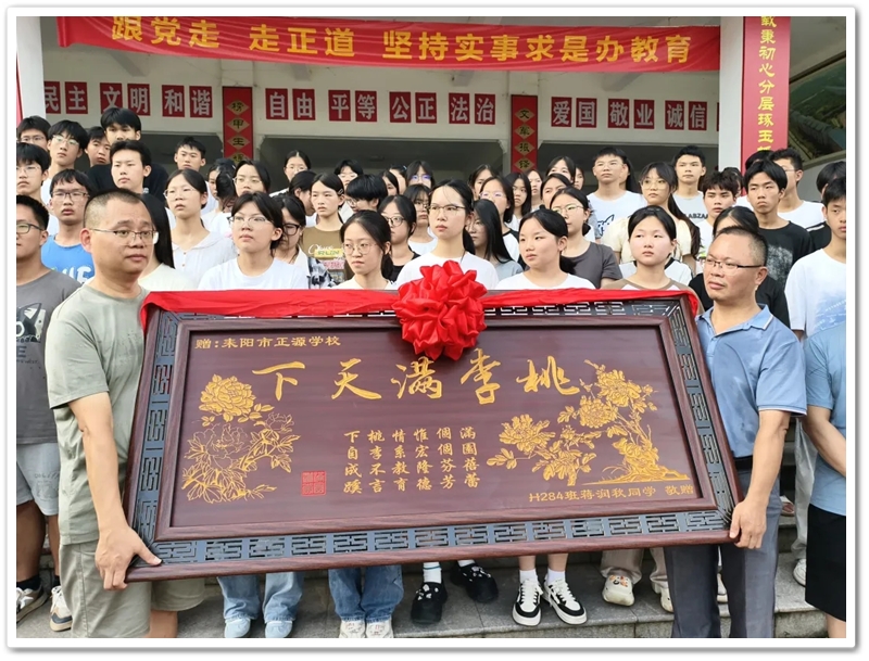 赠匾仪式上,罗校长再次致敬2025届高三老师们创造的正源高考神话新辉煌:最牛文科班包揽耒阳文科一二三名,5人全市前六,8人全市前十;最牛理科班2人并列耒阳第一,全班38人中,37人600分以上;正源600分以上116人稳居耒阳半壁江山。