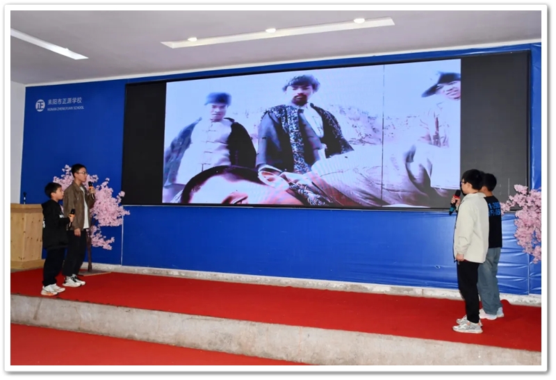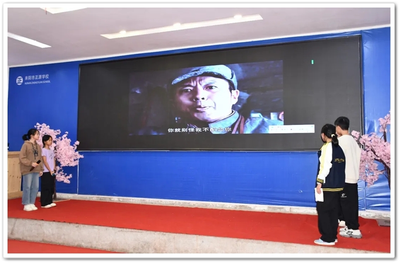 灯光暗下,银幕亮起,一段段承载着民族记忆的经典画面依次呈现。来自初一年级27个班级的配音小演员们,以极富表现力的声音,充沛的情感,“演活”了历史,让书本上的英雄人物变得有血有肉,带领着观众们完成了一场穿越时空的对话。