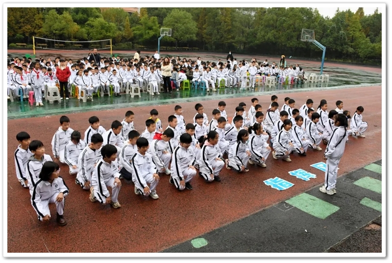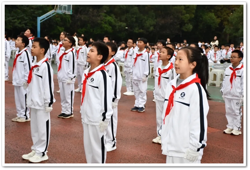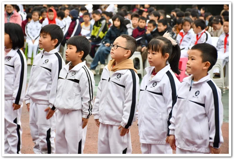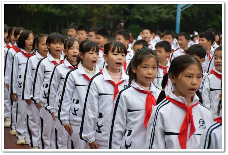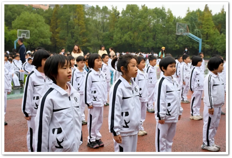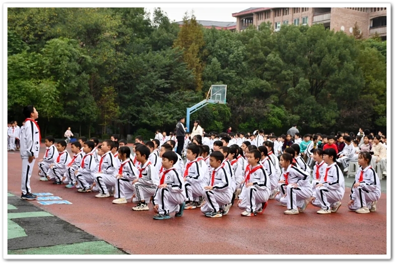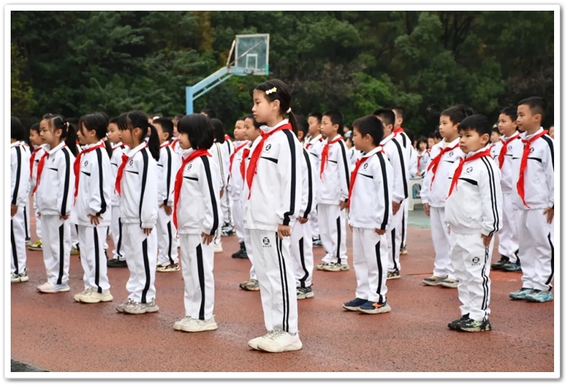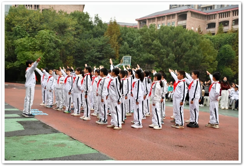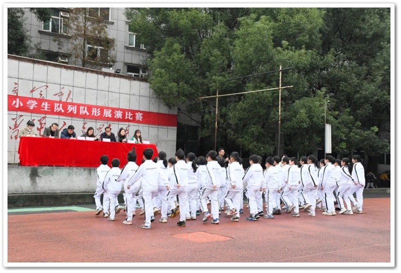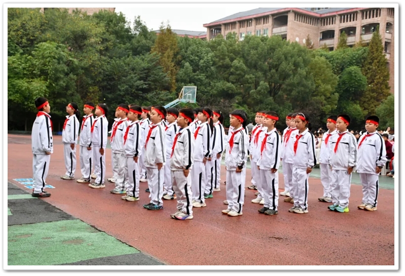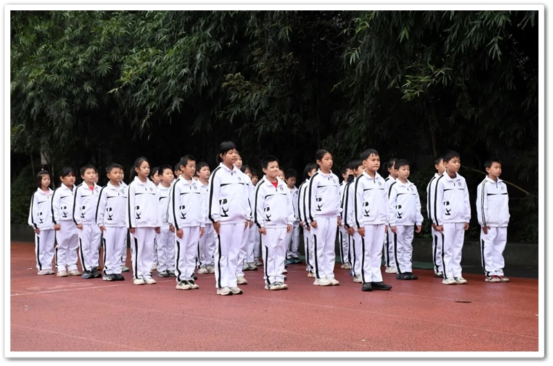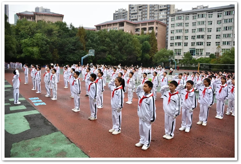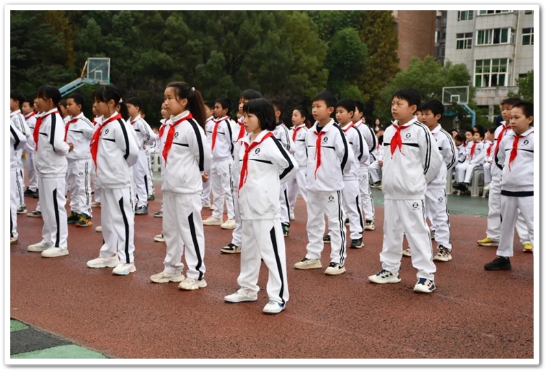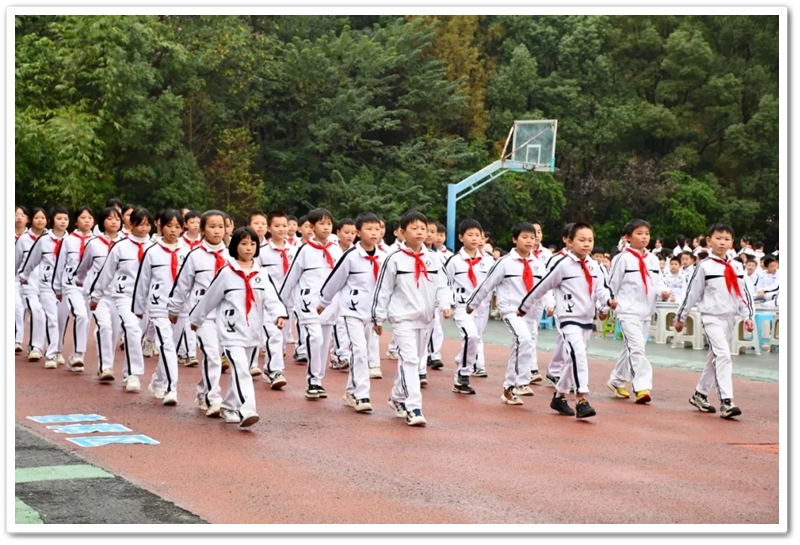 五年级同学则凭借熟练的队列队形技巧脱颖而出,停止间转法动作规范统一,创新环节的节目也是丰富多样,队形变换时“快而不慌、齐而不乱”,退场路线规划合理,充分体现出高年级学生的自律与担当。