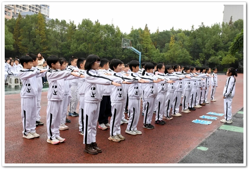 为确保本次比赛顺利进行,小学部全体师生提前一个多月便投入到紧张的训练中。各年级体育老师以及班主任们精心指导,从动作规范、节奏把控到精神面貌,每一个细节都不放过;同学们刻苦练习,不怕吃苦,汗水浸湿了衣衫,却从未有一丝懈怠。他们深知,这不仅是一场比赛,更是对集体荣誉的捍卫,对自身意志的磨砺。