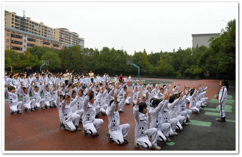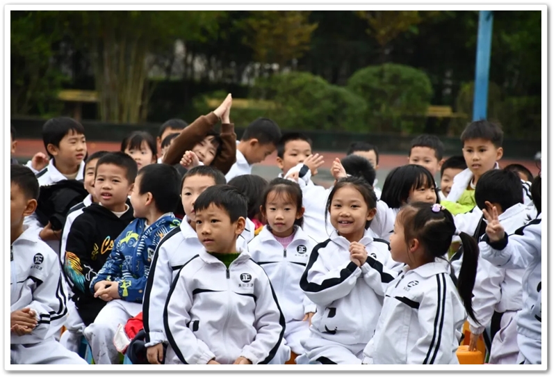 看!三年级同学精神饱满,动作标准划一,舒展有力;听!他们的口号响彻云霄、饱含激情!这些充分体现了团队的凝聚力和奋发向上的精神风貌。
