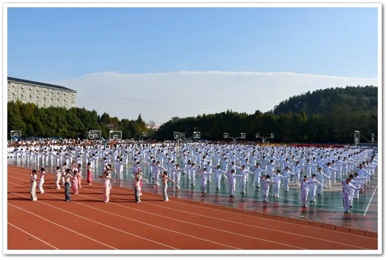 开幕式表演环节异彩纷呈,尽显正源学子的多元风采。准初一年级《我是奶龙》天真烂漫、萌态可掬,瞬间点燃全场欢乐氛围;初一年级《凤鸣九州,艺绽芳华》如诗如画、宛若仙境,将古典韵味与青春活力完美融合;初二年级大型武术表演《武韵》、准高一年级彩球舞《我和我的祖国》、高一年级团体操《幸运一击》、高二年级韵律操《青春友你,舞力全开》,或刚劲有力、气势磅礴,或饱含深情、暖意融融,或动感十足、活力四射,或节奏明快、整齐划一,彰显着蓬勃的青春朝气,将现场气氛一次次推向高潮…… 一场场精心编排的节目,构成了一幅多姿多彩的校园文化画卷,为开幕式画上圆满句号。