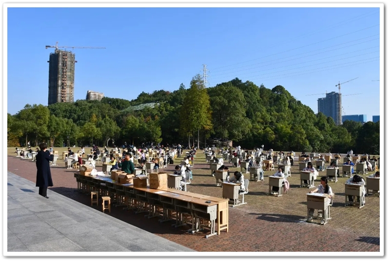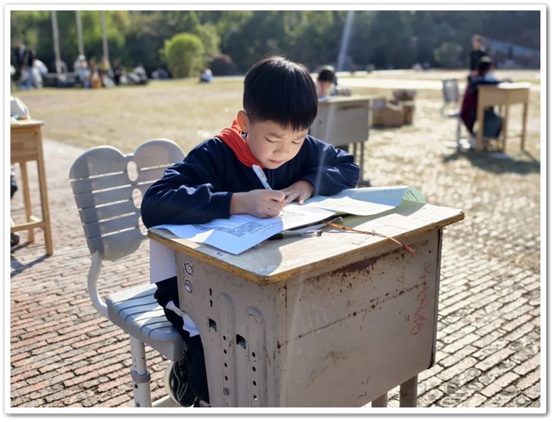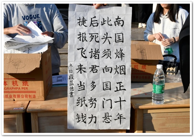 11月22日,第九届中学生体育艺术节进入第二天,正源广场艳阳高照、芳草如茵,整齐排列的桌椅星罗棋布,学子们兴高采烈汇聚一堂,翘首以盼的千人书画大赛如期而至。