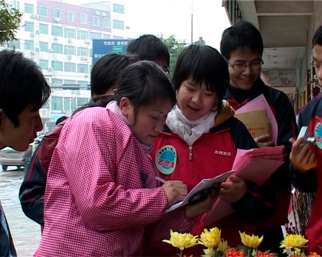 傍晚时分,学生志愿者在募捐点会合、总结。学生们回顾一天的经历,感慨良多。他们在收获捐赠的同时收获爱心,认为这次募捐活动是自己人生经历中最宝贵的财富。