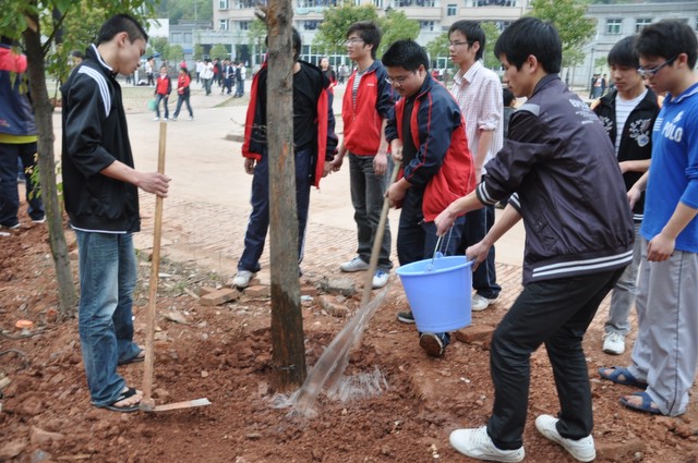 开学以来,我校组织了大规模的植树活动,3月中旬开始,学生们陆续加入了植树的行列。19日下午,高三学生率先栽下了26棵纪念树。同学们齐心协力,一个个热情高涨,忙得热火朝天。为构建绿色优美的校园生态环境、和谐舒适的育人环境抹上了亮丽的一笔。