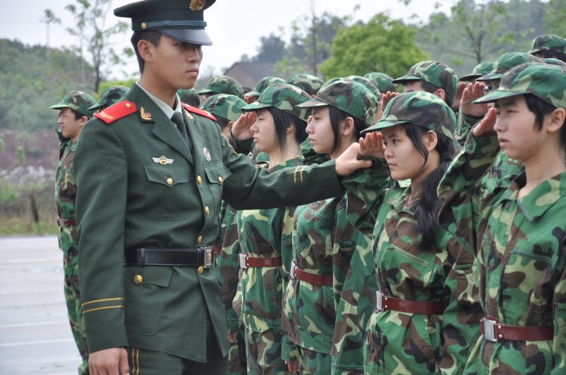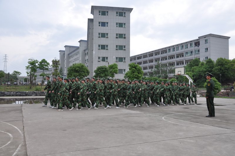 ,学生军训进入第二天,同学们在教官的培训下,认真操练,初见成效。下午,大家在学校广场集合,初