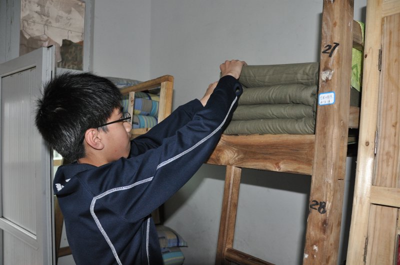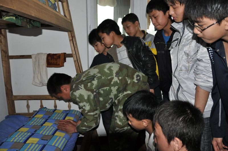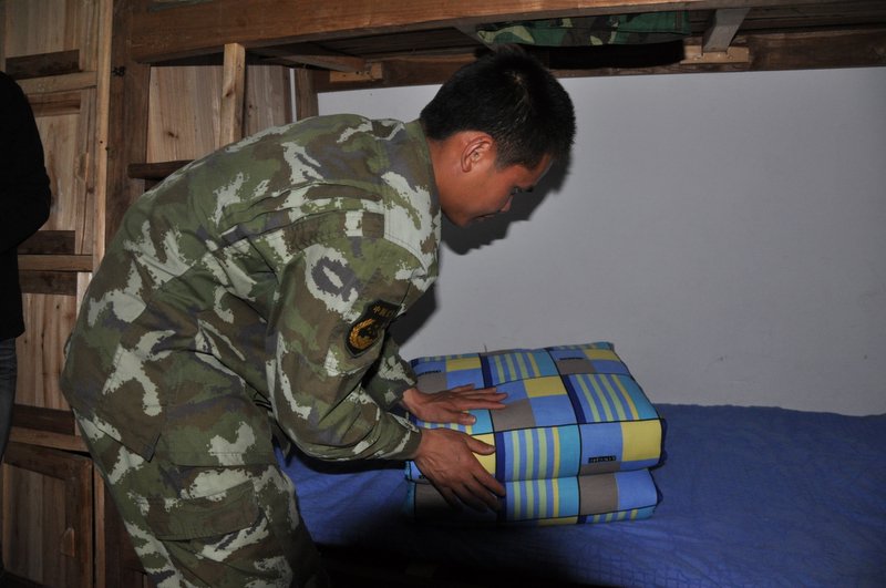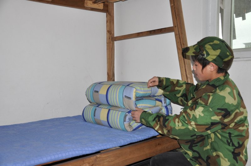 4月21日,军训进入第三天,这一天也是一个特殊的日子,举国下半旗哀悼青海玉树地震遇难同胞。上午8点,同学们在广场集合,降半旗、默哀….然后再进行军训。下午,大雨倾盆,分班进行国防知识教育,还到寝室学习内务整理。