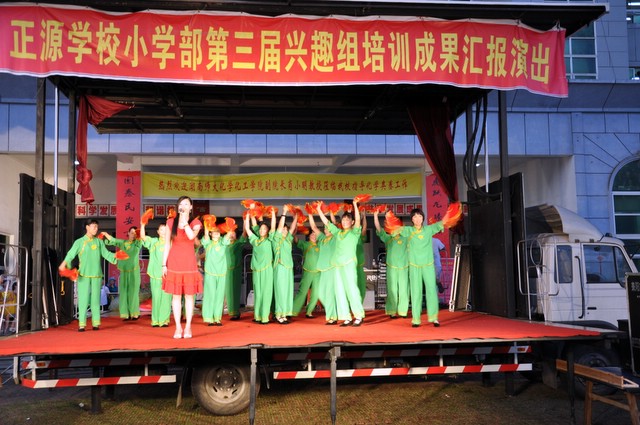 6月30日晚,我校小学部兴趣小组培训成果汇报演出在学校广场隆重举行。这次演出租用了文化馆的演出专用车及灯光设备。徐小学一、二年级在教室观看现场直播外,小学部其他年级师生及部分家长在广场观看了演出。这次汇演共有20个节目,反映了我校丰富多彩的课外活动。