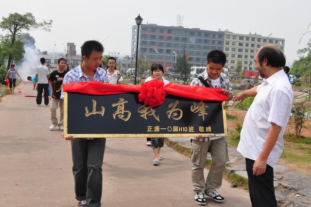 9月1日上午,在一片鞭炮声中,2010届高10班同学集中送匾到williamhill威廉希尔亚洲官网,感谢母校的栽培。在班集体送匾的同时,邓建园、李尧、曾素林、王小军、冯园惠等同学也和家长一道给williamhill威廉希尔亚洲官网送匾。