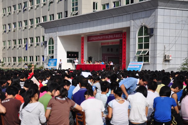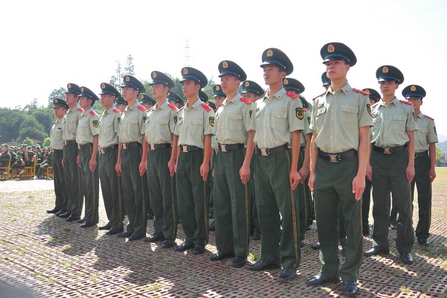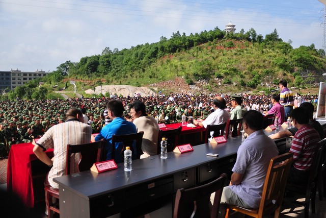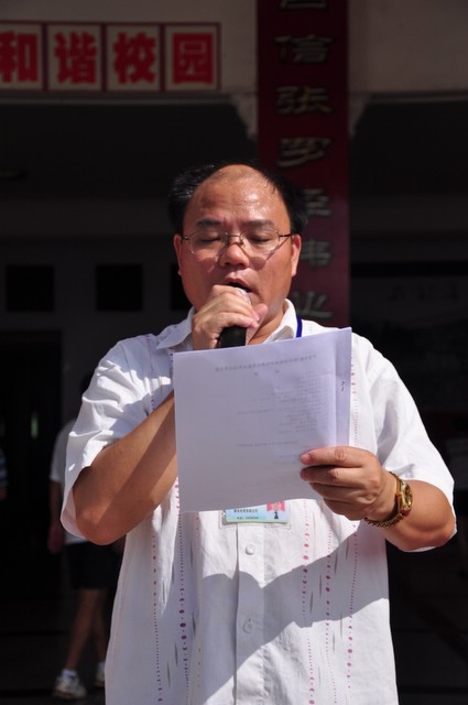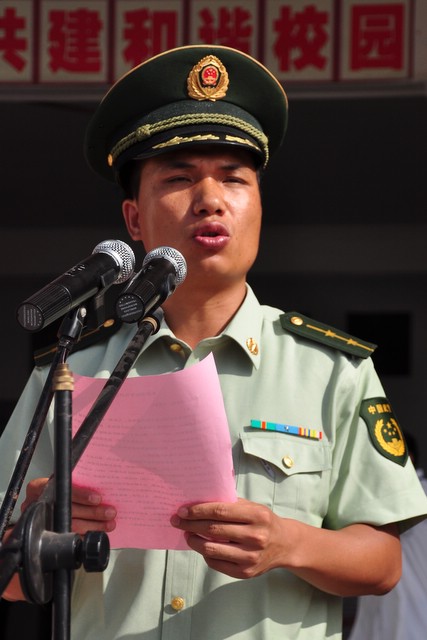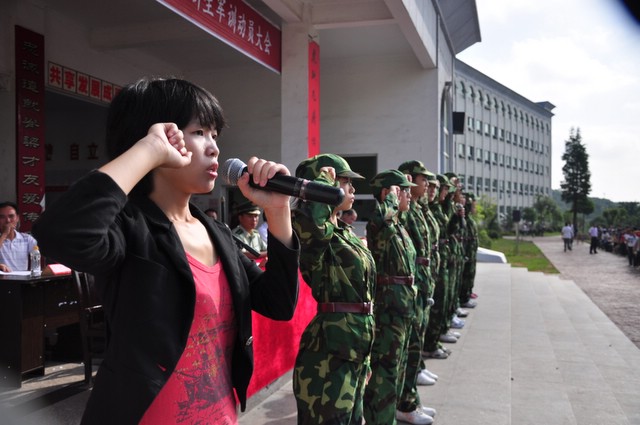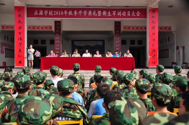 会上,罗校长和部队首长以及毛支书、王伟荣主任分别讲话,新教师代表、学生代表也在会上发言,初一高一新生还举行了军训宣誓。