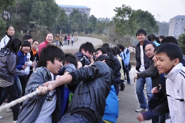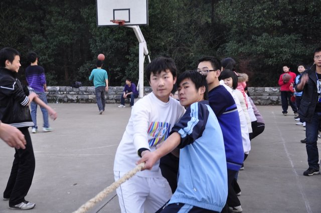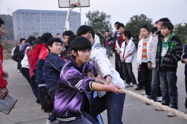2010年12月21号下午第七节课,我校准高一年级在东边篮球场举行拔河比赛。同学们齐心协力、誓为本班争荣誉。