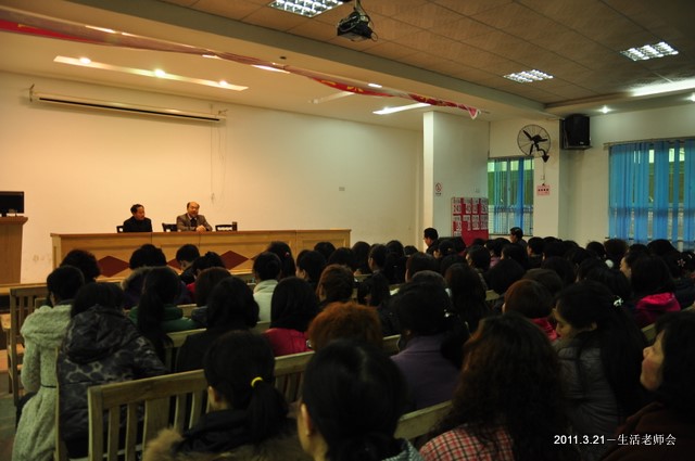 首先是生活教师代表谢廷兰、张泽波发言。讲述了自己在工作实践中的苦和乐,表达了爱心如子、以校为荣和乐于奉献的坚强决心。