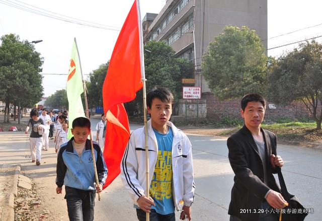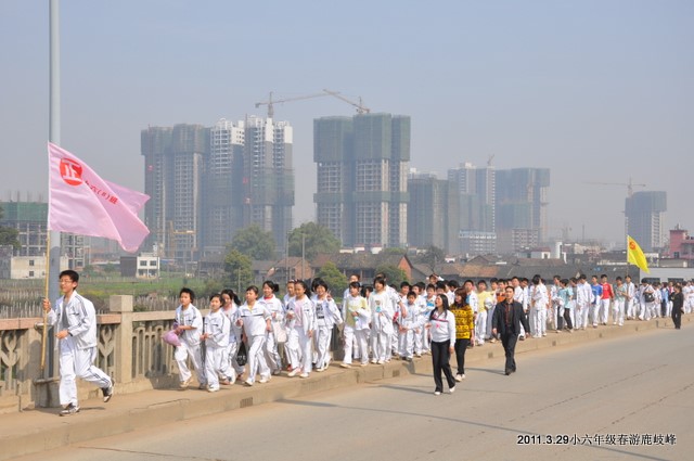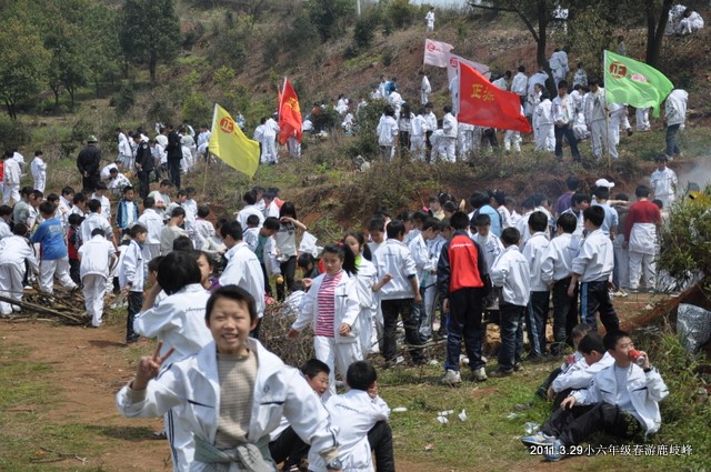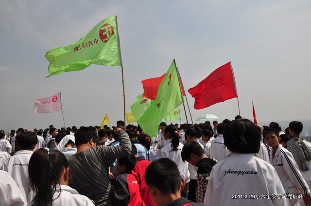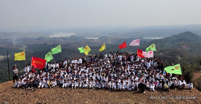 上午八点半,williamhill威廉希尔亚洲官网小学部六年级600余名师生,扛着五彩缤纷的班旗,排着整齐的队伍,浩浩荡荡地向鹿歧峰进发。一路上,大家兴高采烈地说啊笑啊唱啊,个个精神饱满,十一点十分直在前面的同学登上鹿歧峰顶。