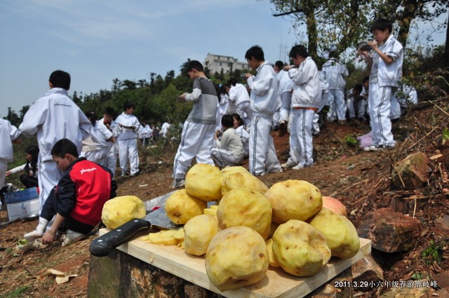 中午,他们在班主任及生活老师的指导下,垒石灶,拾干柴,包饺子,切土豆,在山坡上点起了缕缕炊烟,自已动手搞野炊,吃得开开心心!
