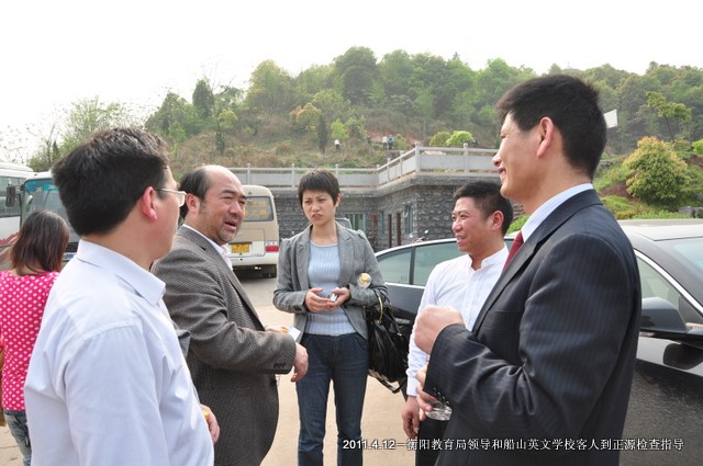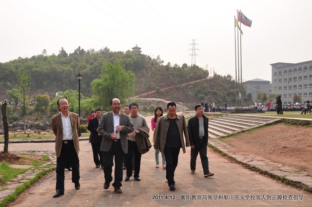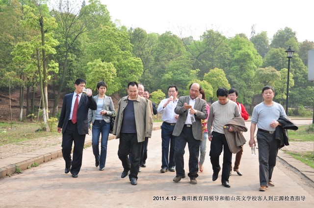 下午,衡阳市教育局党委委员罗主席、老局长严洪涛及民教办唐科长、周科长并与衡阳船山英文学校的负责人一行到正源视察参观指导。罗校长和毛支书陪同大家参观了校园并汇报了学校的办学情况。