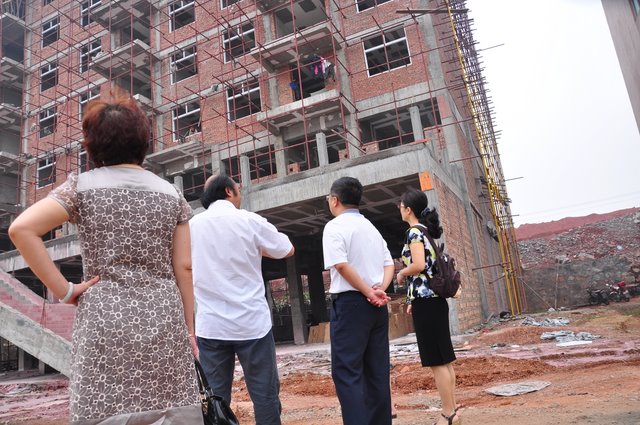 梁晓斌夫妇一行先后视察了正在建设的学生宿舍楼、小学部教学楼,每到一处,梁董事长都查看了各项基础设施的建设情况,对目前各项设施的建设表示非常满意。尤其是到了小学部的教学大楼前,梁董事长对工程质量、建设进度及教室的设计,都仔细进行了查看,并不时对相关工作进行咨询。最后,梁董事长在罗校长的陪同下,来到学校右边的山上,对学校保护青山的力度表示赞赏,对学校办学六年来取得的成绩和社会上的反响赞赏有嘉。