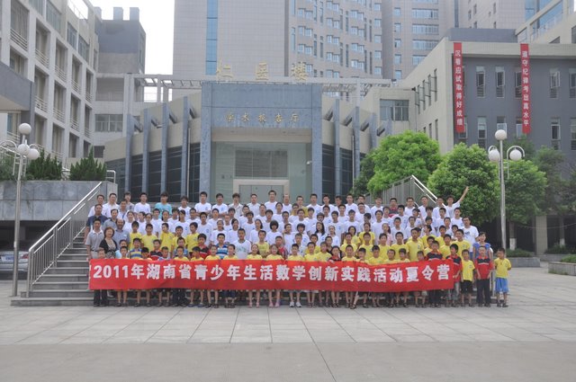 7月20至22日,由湖南省数学学会、湖南省青少年科技教育学会组织的“2011年湖南省首届青少年生活数学创新实践夏令营活动”在长沙召开。我校组织的从小学三年级至高中二年级等八个年级共133名优秀选手参加了此次夏令营活动,校长罗湘云亲自带队,与全体参赛选手齐赴长沙参加了此次活动。