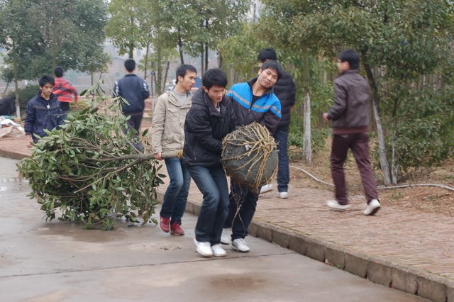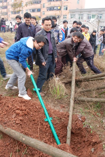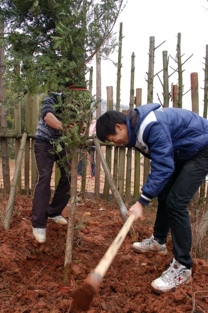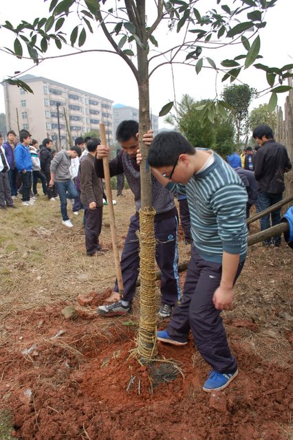 当日下午,在班主任的指导下,同学们分工明确:有扛树的、挖坑的、浇水的…,每个人都参与了这次非同寻常的植树活动。