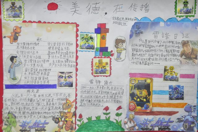 三月是学雷锋月,1963年3月5日,毛泽东发表了“向雷锋同志学习”的题词,在全国范围内掀起轰轰烈烈的学雷锋运动。为了倡导雷锋精神,积极改变学校风貌,我校小学部三年级举行了学雷锋手抄报大赛。大赛期间,同学们的积极参与,获得了老师们的一致好评。通过这次活动使同学们明白了雷锋精神的实质是在别人困难的时候提供力所能及的帮助。人的生命是有限的,可是为人服务是无限的,我们要把有限的生命,投入到无限的为人民服务中去!