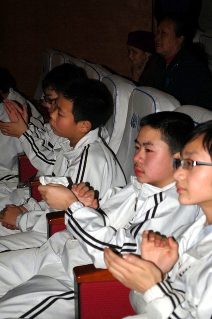 我校的学生们一到文体中心门口,就有志愿者前来带队,而且两排志愿者边打招呼“老师好”边行九十度的鞠躬礼。这特别的礼遇让有的同学不知所措,有的顿时受感染而回以一个温馨的微笑。论坛老师们的讲述、忏悔感人致深,震撼人心,有些同学感动得热泪盈眶。