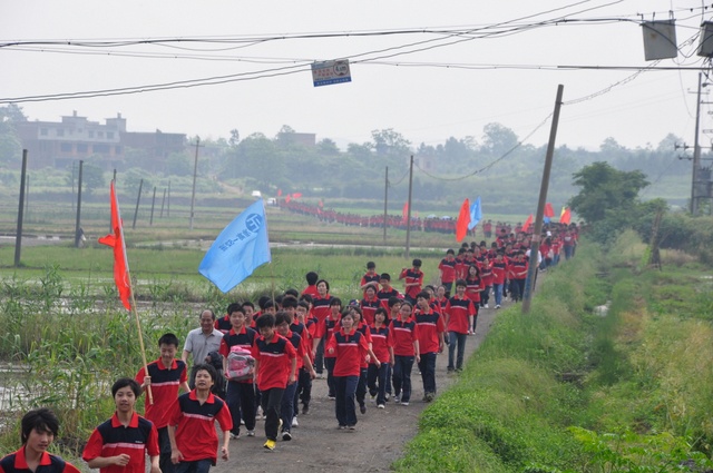继学前班和初一远足之后,时隔几个下雨的日子,5月16日,williamhill威廉希尔亚洲官网准高一年级500多学生在罗校长和老师的带领下,绕道东二路经白洋村进入蔡伦科技园再辗转盘古庙。大家精神饱满,行走在乡村小路,一路风光一路歌。在盘古庙观赏诸多栩栩如生的人物雕像和精巧的建筑工艺,深深感受到传统文化的无穷的魅力。中午,大家在山顶上的空坪进行野炊,饱食饺子、面条、土豆、黄瓜,不亦乐乎。下午四点半凯旋而归,圆满结束此次40多里的远足活动。