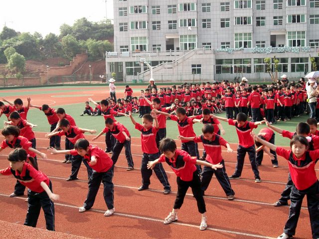 下午两点半,骄阳似火,同学们排着整齐的队伍迈入运动场。各班按照抽签顺序上场比赛。同学们整齐划一的动作赢得了观众们热烈的掌声。经过激烈角逐,五年级组108班、111班荣获一等奖,109班、112班荣获二等奖,58班、57班荣获三等奖。最后,小学部刘德主任对这次比赛进行了总结,他动情地说:“看你们做操,真是一种美的享受!” ( 文: 沈存孝 )