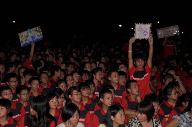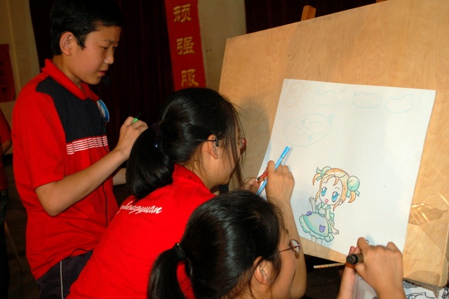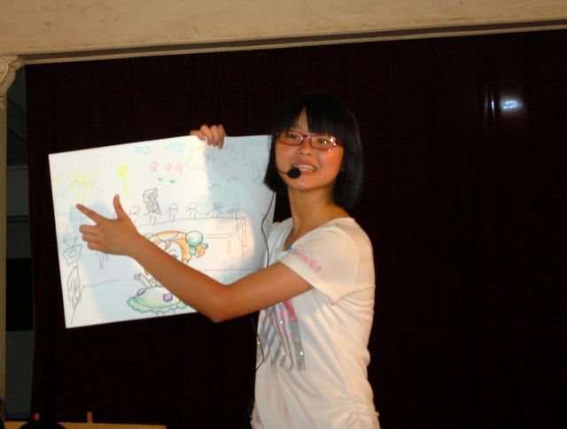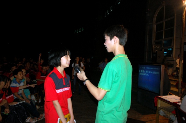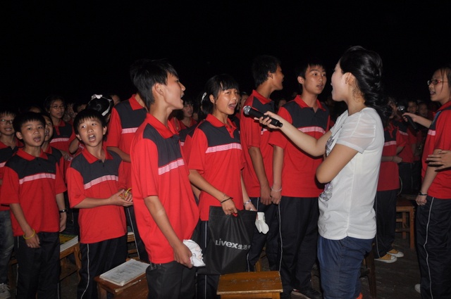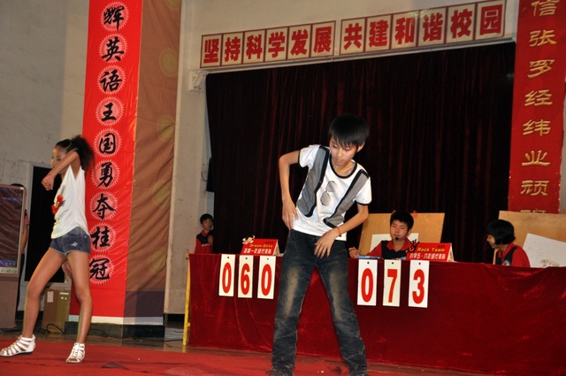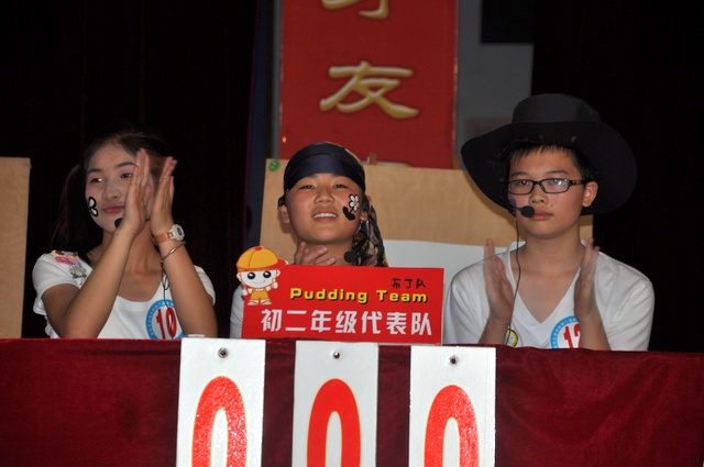 为了给选手们留出下一个环节准备的时间,中间穿插了富有活力、时尚的舞蹈,当动感的音乐响起,很多同学拿起手上的荧光棒随着节奏舞动。此时,黑夜已经降临,夜似乎凝成了黛色的玉块,学生手上的荧光棒像是流星群划过天空,光彩夺目。最后一个环节表演的时刻到了,每一组的选手们都准备好了服装和道具,尤以准高一表演的情景剧《白雪公主》让人印象深刻,流畅活泼的语言、夸张投入的表演、落落大方的气质,让台下的学生欢呼雀跃,将这场英语竞赛推上了高潮。经过这几轮环节的激烈角逐,初一年级以119分摘得桂冠。整场比赛在学生们优美的英语歌声中落下了帷幕。