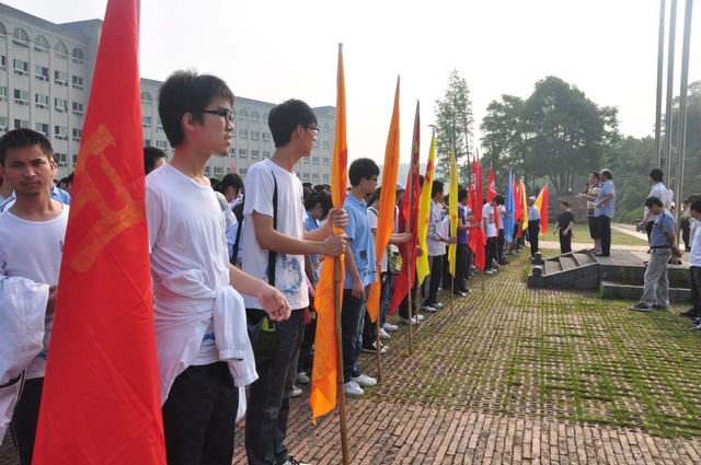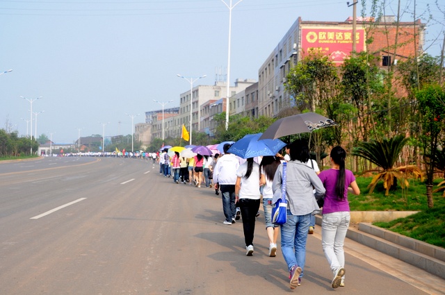 上午9:30点,高三年级700多学生排着整齐的队伍从学校出发,沿高速公路联络线经五里牌转向107国道,然后到达14里开外的盘古庙。一路上,旌旗招展,欢声笑语,浩大的队伍始终保持着整齐的队形,无不展现williamhill威廉希尔亚洲官网高三学子的良好的素质和精神风貌。高三年级学部主任、年级主任及班主任和部分科