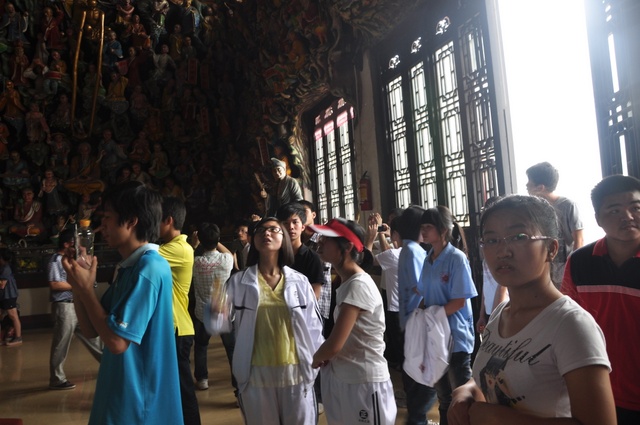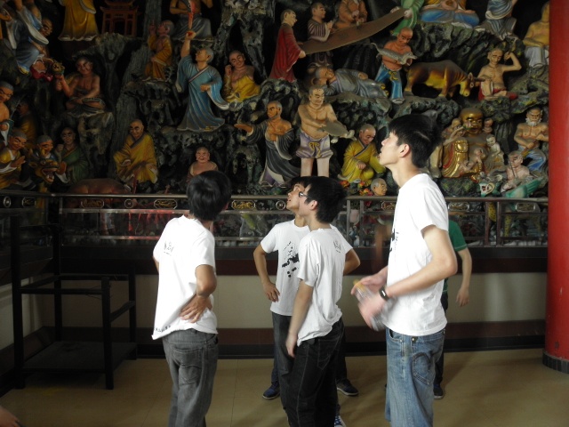 上午11点多钟,同学们在盘古庙参观游览,拍照留影;登高远眺,舞旗弄影,说说笑笑,非常开心。盘古庙的建筑艺术和佛教文化让同学们为之震撼,无不钦佩耒阳人的胆略和智慧,并由此激发自己发奋学习的热情和追求更高人生目标的信念与决心。