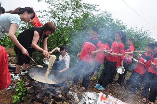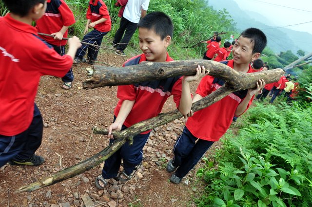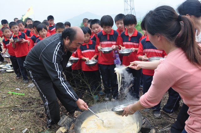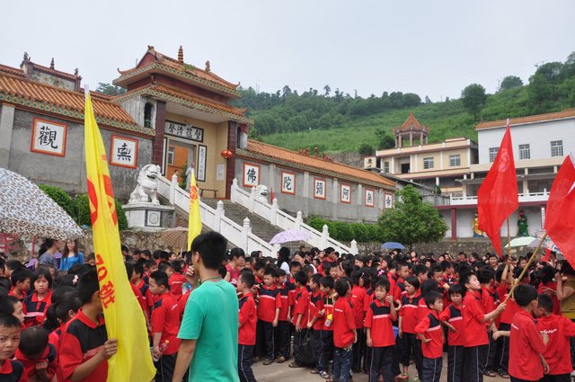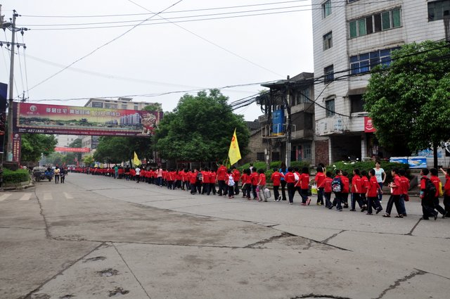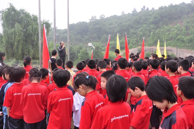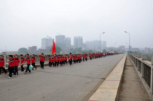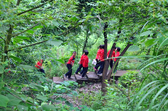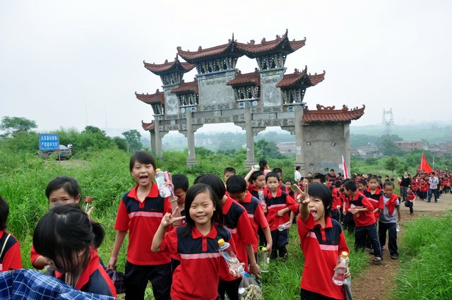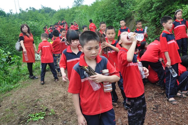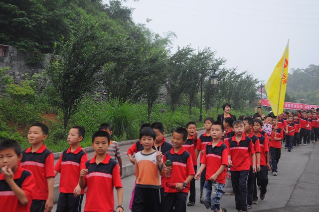 5月28日,小学三年级十个班560多个小孩子远足鹿岐峰,挑战高年级的大哥哥大姐姐们。从上午8:30分出发,途经蔡伦纪念园参观浏览,然后直奔鹿岐峰,用了三个多小时就到达鹿岐峰山顶,在山上进行一番野炊,置身香气四溢的大自然里,孩子们个个笑逐颜开,得意忘形。下午3点多钟打道回府。回校的时候,预先安排好的校车在队伍的后面只是检了少数实在走不动的小孩子,其余90%以上的小学生们徒步完成了来回48里路程。连续带领其他年级远足了几天的罗校长和小学部刘德主任,都感到有些辛苦,看到小孩子们活奔乱跳的情形,由衷感叹"自古英雄出少年"!