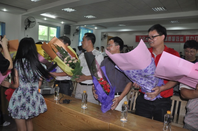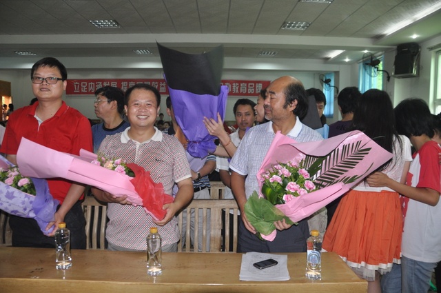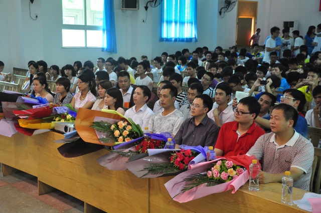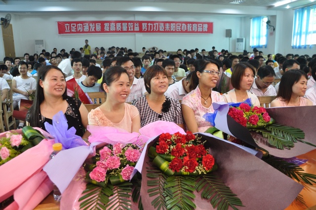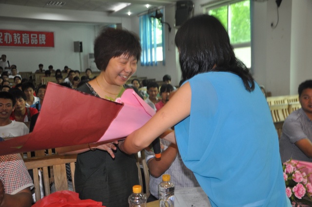 上午9点半,高三学生全体起立,用热烈的掌声欢迎学校领导、高三老师以及曾教导过他们的初中老师代表入场,并向他们敬献鲜花。