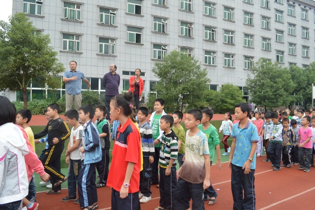 【2012年9月21日讯】连续三天来,小学部三至六年级共3100名学生利用课间操期间,进行跑操训练,罗校长和小学部领导亲自调度指挥,同学们在体育老师的口令下,从列队开始,逐步训练集体行走和跑步。