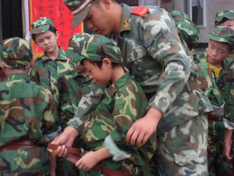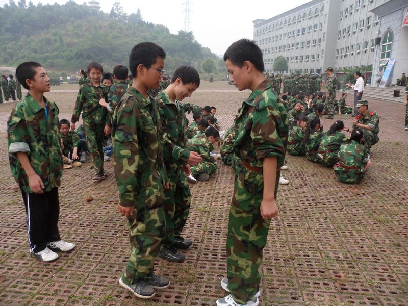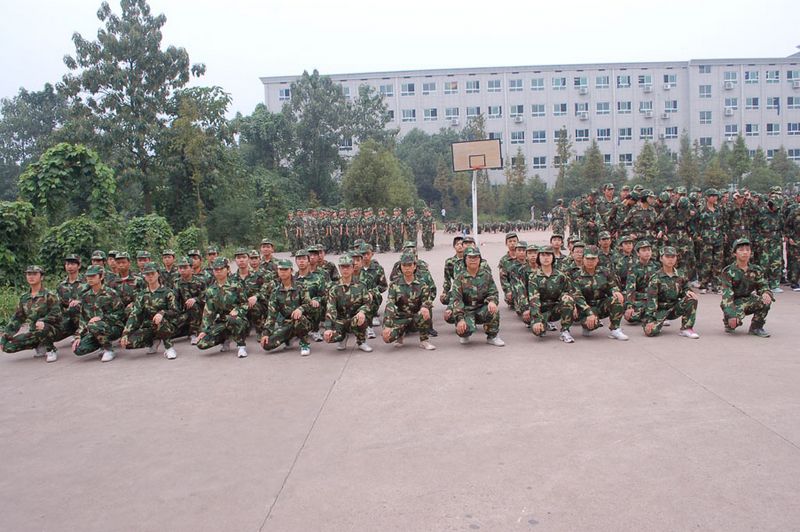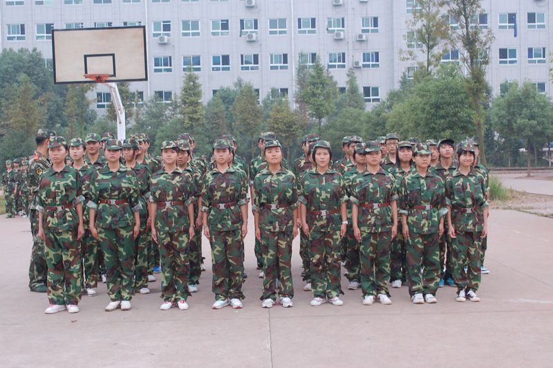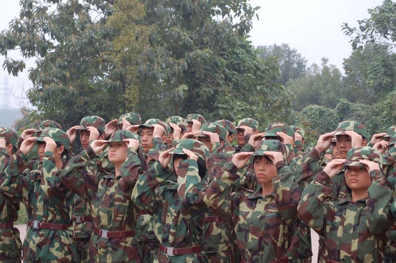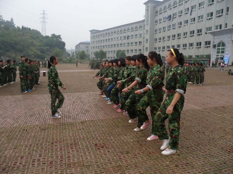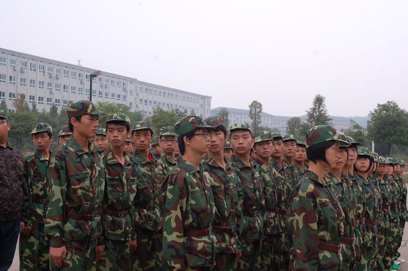 今天训练的内容除了前两天的立正、稍息、原地踏步、摆臂等外,初中新生还增加了齐步走的新内容;而高中新生则增加了整理着装、行军礼等新内容。经过两天的训练,军训已初见成效:向右看齐懂得了碎步快速移动;立正稍息知道双手并拢紧贴裤缝;原地踏步基本做到高抬腿、手臂伸直前后摆动……听,教官铿锵有力的口令又在响起,小战士们迅速入列,整好队伍等待教官训练;看,操场上同学们挥汗如雨,象模象样地训练着规定的动作,尽显飒爽英姿。向左向右向前看齐,脸绝对往同一个方向;报数绝对声音短促响亮;踏步绝对整齐有力……对不规范的动作,教官手把手地教,同学们热情地帮助。一遍不行, 两遍,三遍……全队不行分列练、分个体练。教官更是手段高明,软硬兼施。训练中做得好的,全体鼓掌祝贺,休息时间就早些多些,做得不好的,则或有做俯卧撑的、站军姿的处罚。同学们精神饱满地接受教官们的严格训练。他们深深地懂得原来钢铁是这样炼成的。